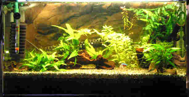 5月14日(火)水草を実際に植えてみると、やはり少ないようなので、アマゾンチドメグサ、アンブリア、エキノドルス・テネルス、赤い色もほしかったので、赤色の水草では比較的簡単かもしれない、アマニアグラキリスを購入し植え込み、別の水槽から、アマゾンソードをほぼ中央に植えた。どうも全体のバランスが良くないような気がするので、溶岩石を右奥に移動し、右のエアーリフトのパイプを隠すようにし、ボルビティスとミクロ...