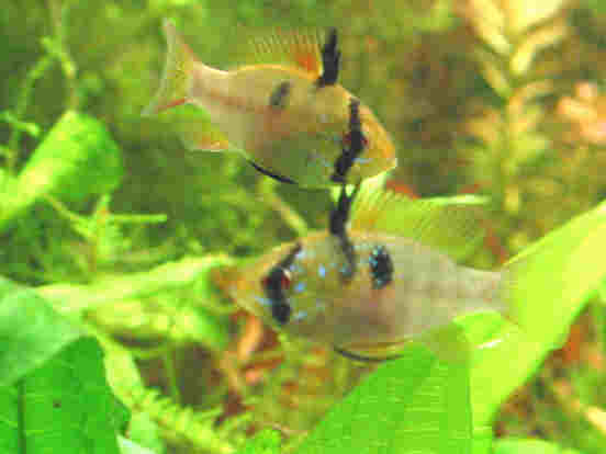 第6水槽(水草・混泳水槽)のドイツラムは、ペアの多分雄と思われる個体と、別の雄と思われる個体が、よく突付きあいの喧嘩をする。